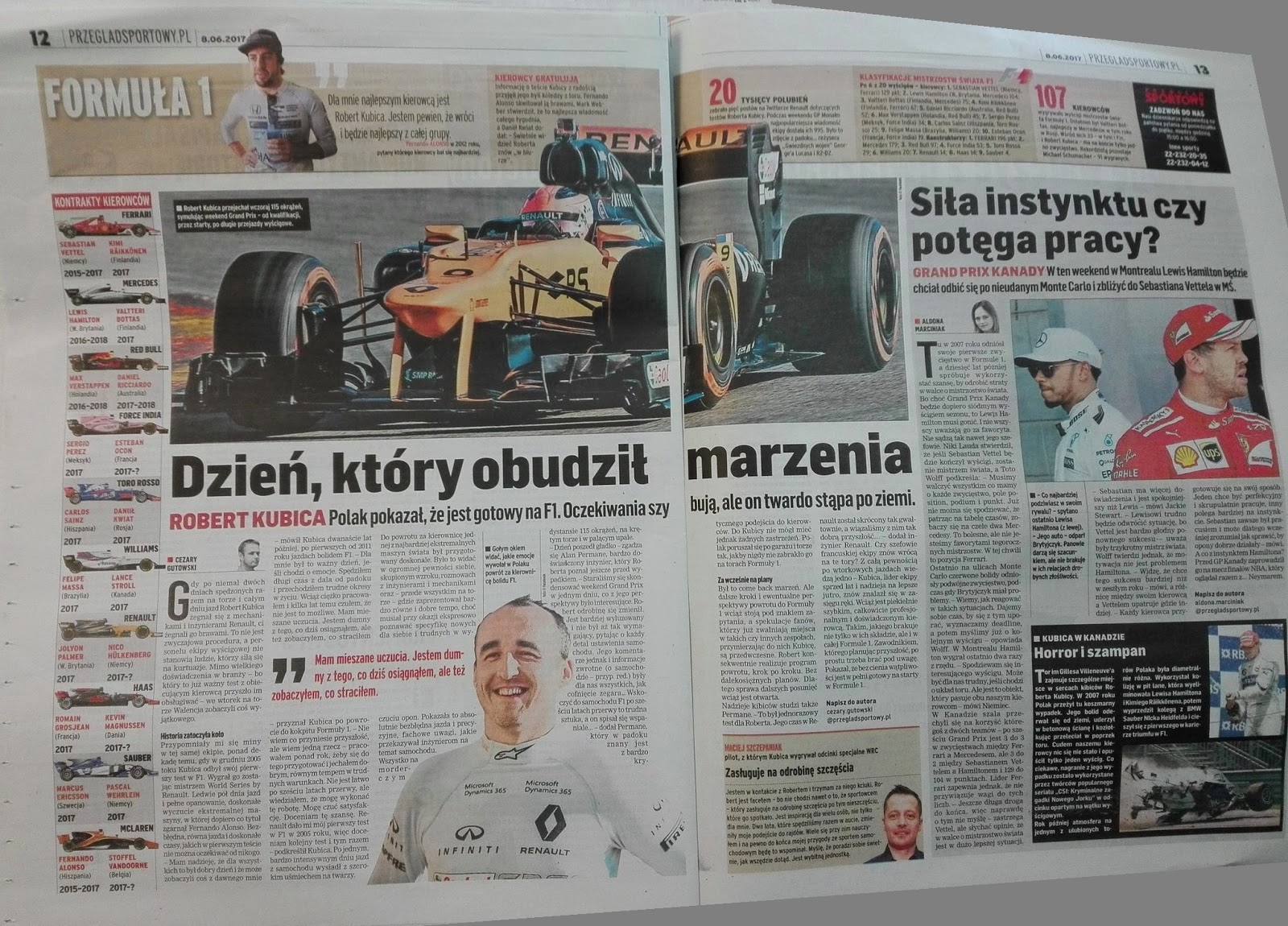 ...artykuł w Onet Sport przeczytacie tu: Dzień, który obudził marzenia o powrocie. Czy Roberta Kubicę zobaczymy jeszcze w F1?